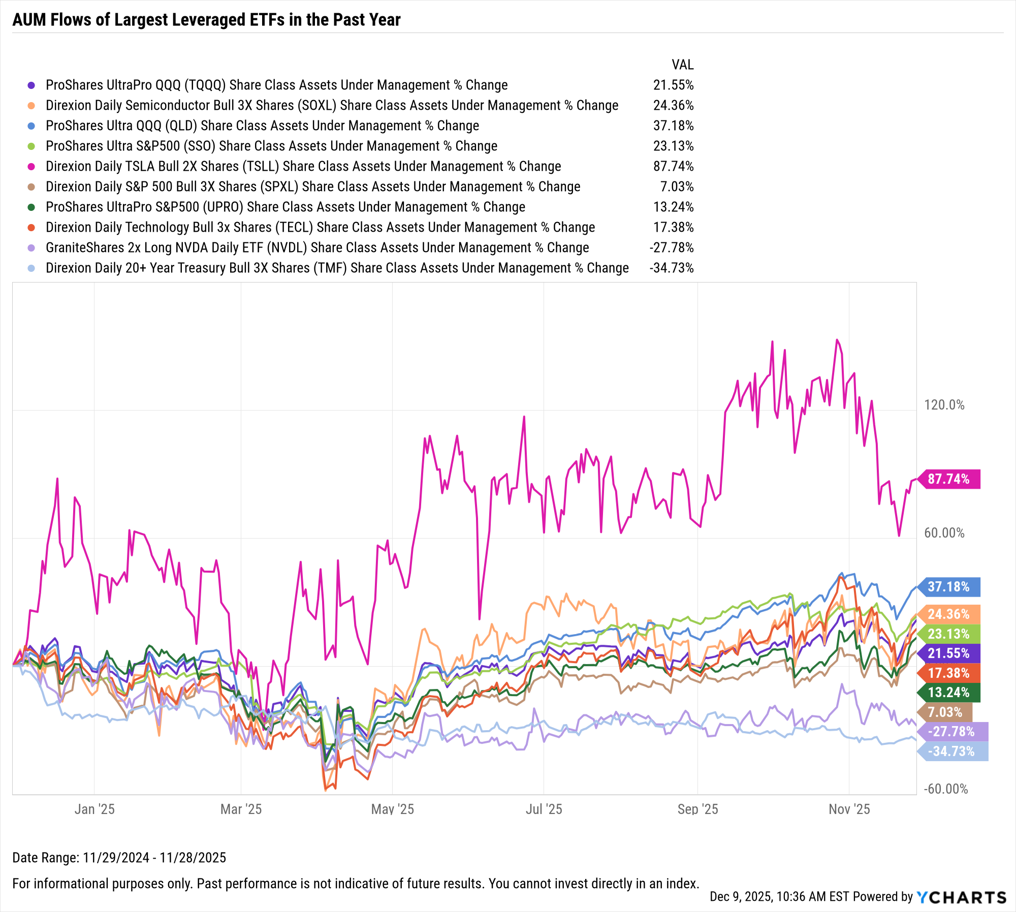These are the largest Leveraged ETFs as of November 30, 2025.