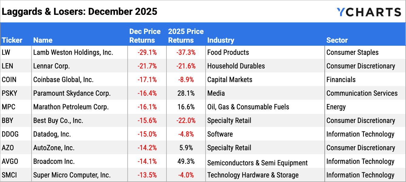 Laggards & Losers: 10 Worst S&P 500 Performers of December 2025