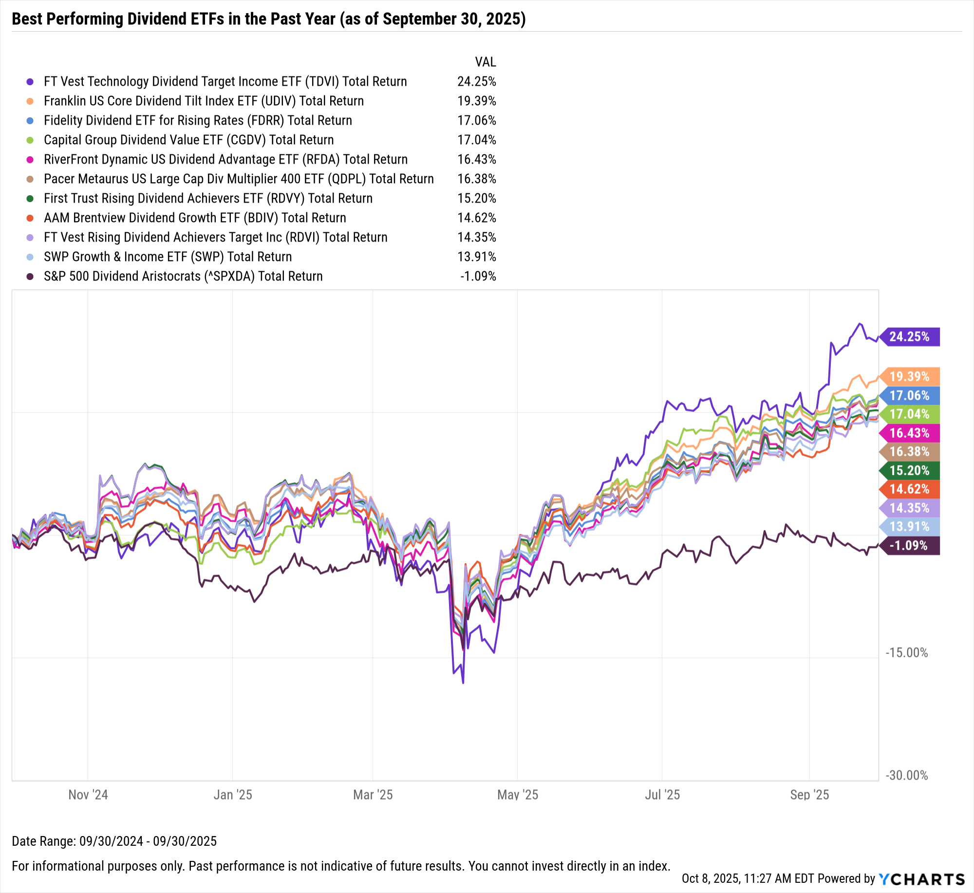 These are the top-performing dividend ETFs over the past year, as of September 30, 2025.