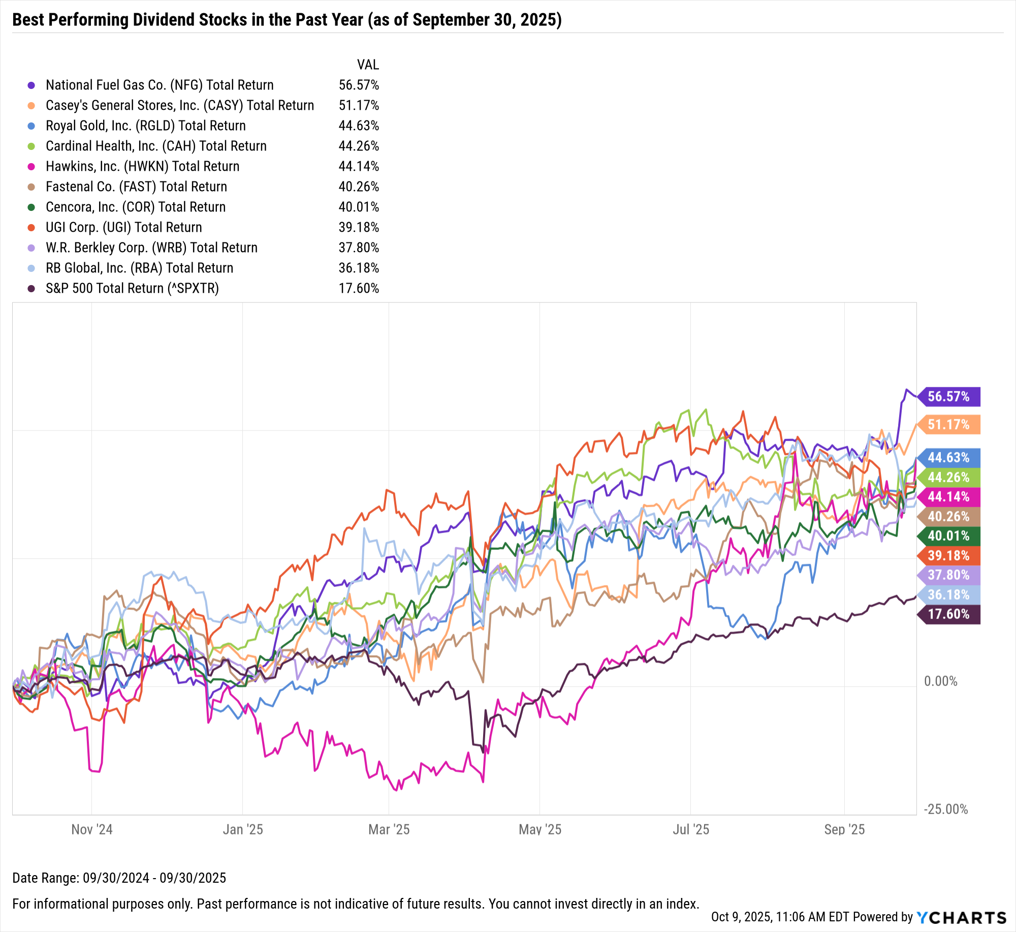 These are the top-performing dividend stocks over the past year, as of September 30, 2025.