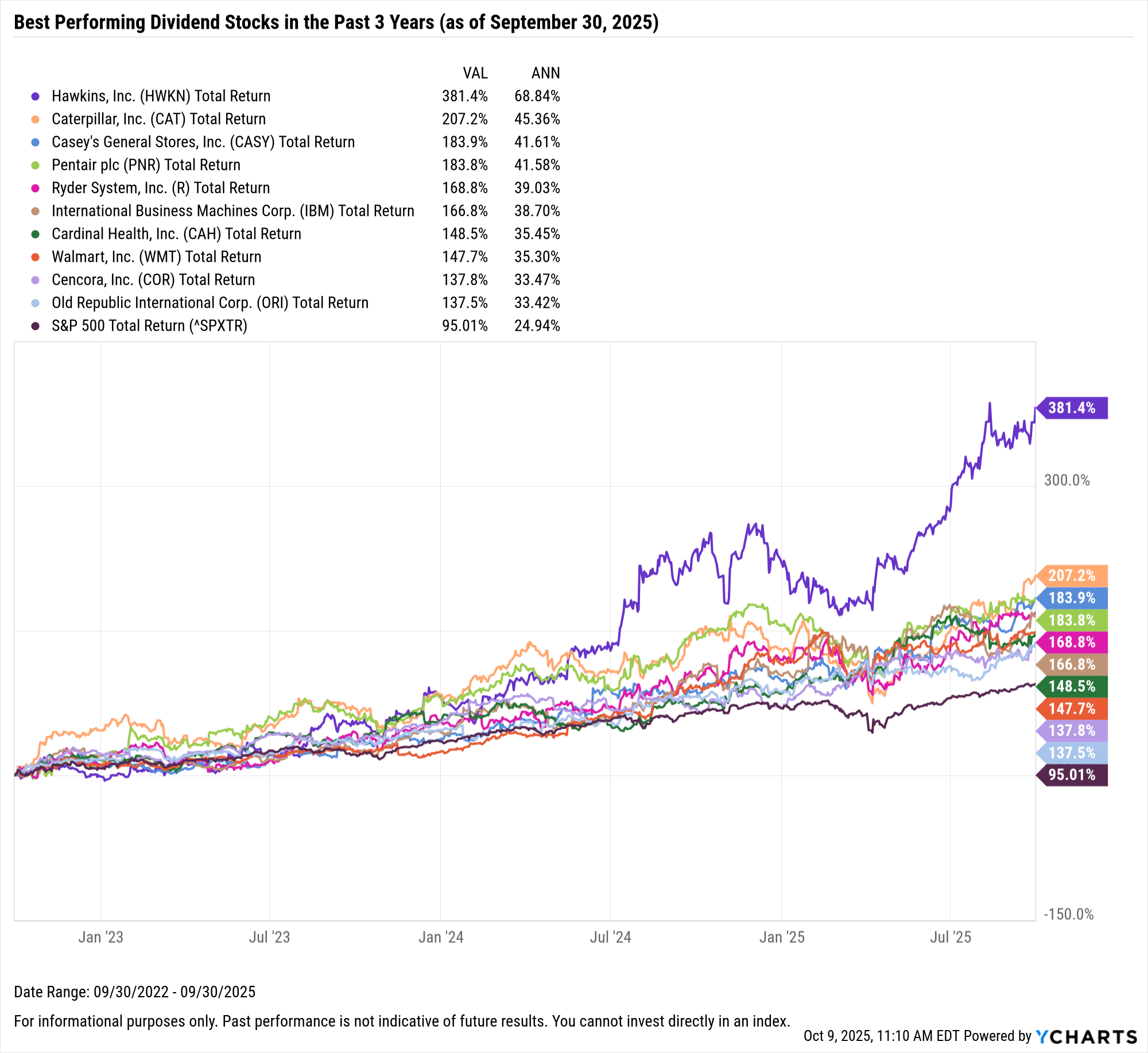 These are the top-performing dividend stocks on an annualized basis between October 1st, 2022 and September 30, 2025.