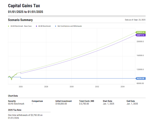 Consider a client with a $100,000 taxable portfolio and $25,000 in unrealized gains: