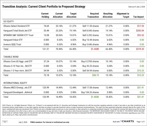 For advisors, it replaces guesswork with a client-ready PDF, turning a difficult conversation into a transparent one. Generate client-ready transition reports instantly with YCharts. (trial link)